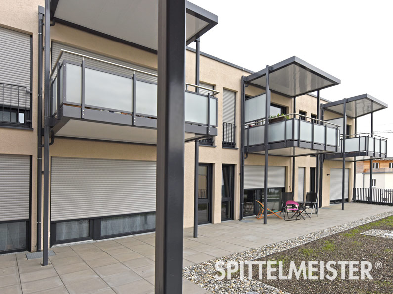 Spittelmeister setzt für Balkondächer nur hochwertige, witterungsbeständige Werkstoffe ein, die sich durch Langlebigkeit und Sicherheit auszeichnen: hauptsächlich Stahl wegen seiner Filigranheit, seltener Aluminium und Edelstahl. Als Dachfüllung bieten wir Verbundsicherheitsglas, welches auch getönt erhältlich ist, oder Acrylglas an.